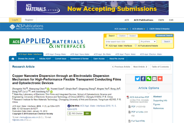 该论文首次提出纳米线弱电场平衡分散机制,解决了铜纳米线的难分散、后处理温度高等瓶颈问题,掌握了国际最先进的铜纳米线浆料技术。基于该技术制备了高性能透明导电薄膜,实现了用铜纳米线在OLED和OPV中应用,率先将铜纳米线薄膜技术从实验室推进到中试生产阶段。