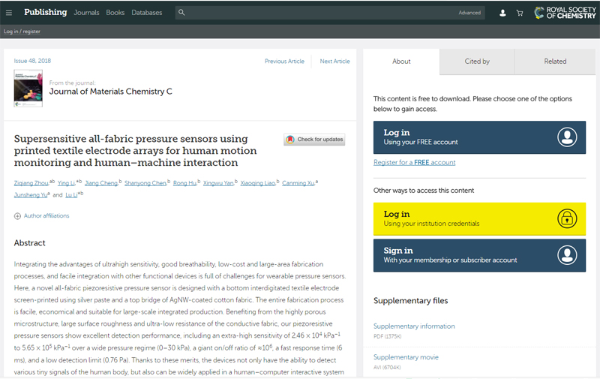 2. Supersensitive all-fabric pressure sensors using printed textile electrode arrays for human motion monitoring and human–machine interaction