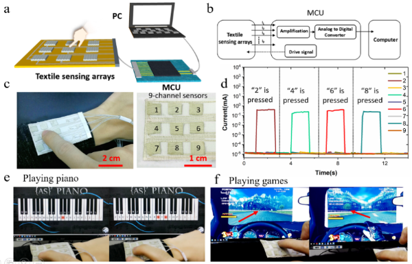 2. Supersensitive all-fabric pressure sensors using printed textile electrode arrays for human motion monitoring and human–machine interaction