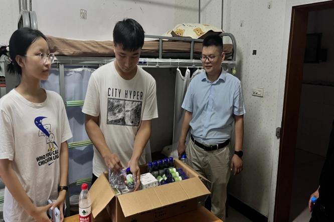当天下午,学院领导率辅导员老师分四个工作组,全覆盖深入新生寝室,对存在问题进行及时处置。在看望新生过程中,学院为每间寝室分发了藿香正气液等避暑药品,并叮嘱同学们高温天气注意防暑降温。鼓励新生来校后培养自我管理意识,积极主动适应新环境,做好新阶段的人生规划,丰富充实即将开始的大学生活。