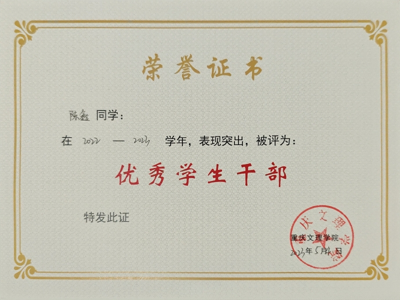 3.2023年,获评重庆市普通高校2023学年度三好学生;