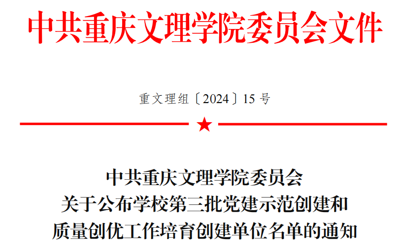 据悉,学校根据《中共mansion88明升委员会关于开展第三批新时代高校 党建示范创建和质量创优工作的通知》(重文理组〔20248 号),经各单位申报、专家评议、常委会审定、公示,确定 2 个标杆院系、7 个样板支部、2 “双带头人”教师党支部书记工作室为学校第三批党建示范创建和质量创优工作培育创建单位。