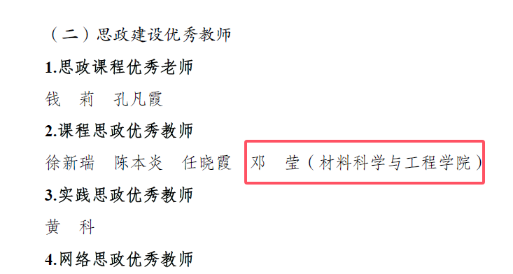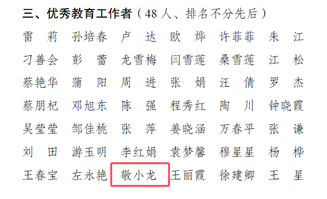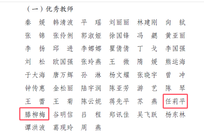 我院任莉平、腾柳梅老师荣获优秀教师,邓莹老师荣获课程思政优秀教师,敬小龙老师荣获优秀教育工作者。